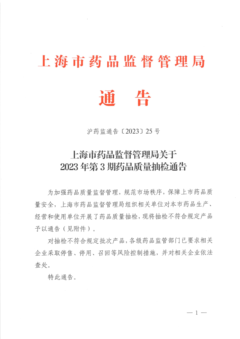 为加强药品质量监督管理,规范市场秩序,保障上市药品质量安全,918博天堂组织相关单位对本市药品生产、经营和使用单位开展了药品质量抽检,现将抽检不符合规定产品予以通告(见附件)。