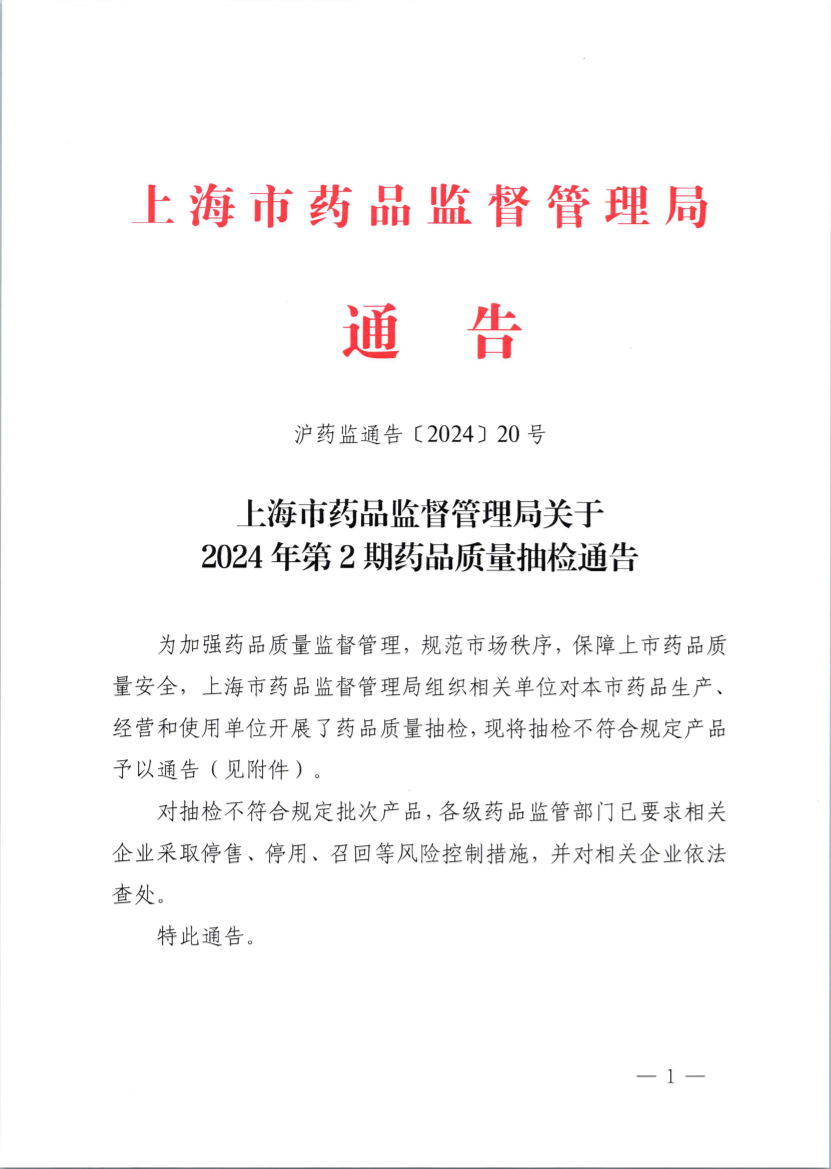 沪药监通告〔2024〕20号
