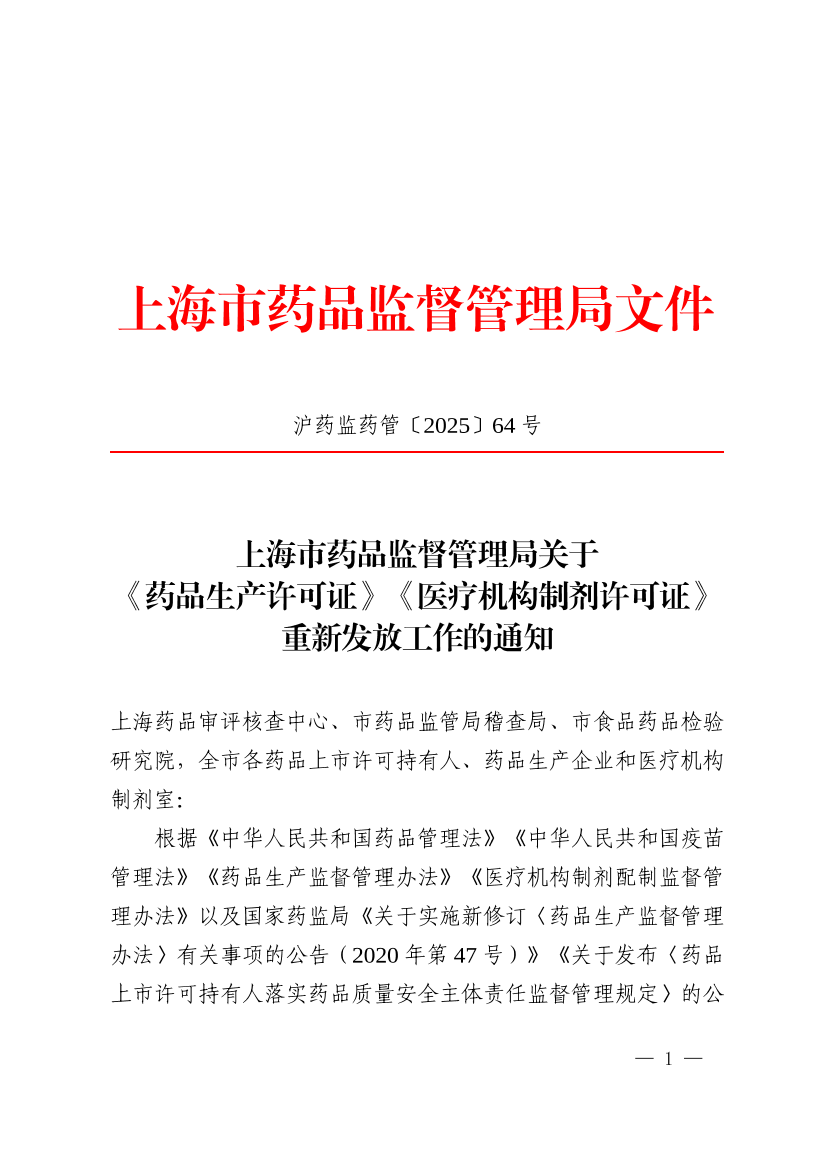 沪药监药管〔2025〕64号