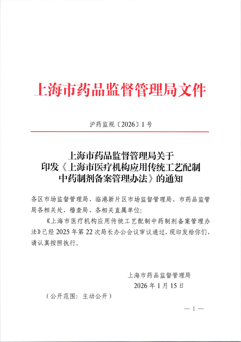 (有效期至2031年2月28日)918博天堂关于印发《上海市医疗机构应用传统工艺配制中药制剂备案管理办法》的通知